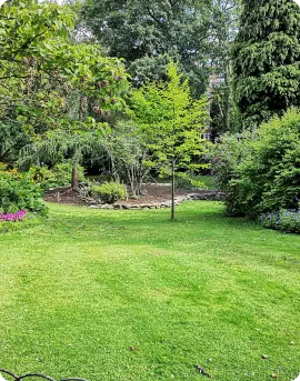 Обустройство аналогичной полосы должно осуществляться после завершения строительства сооружений, на начальных стадиях облагораживания. Потому что именно по ней в дальнейшем закладываются пешеходные дорожки и разравнивается земля под укладку газона.